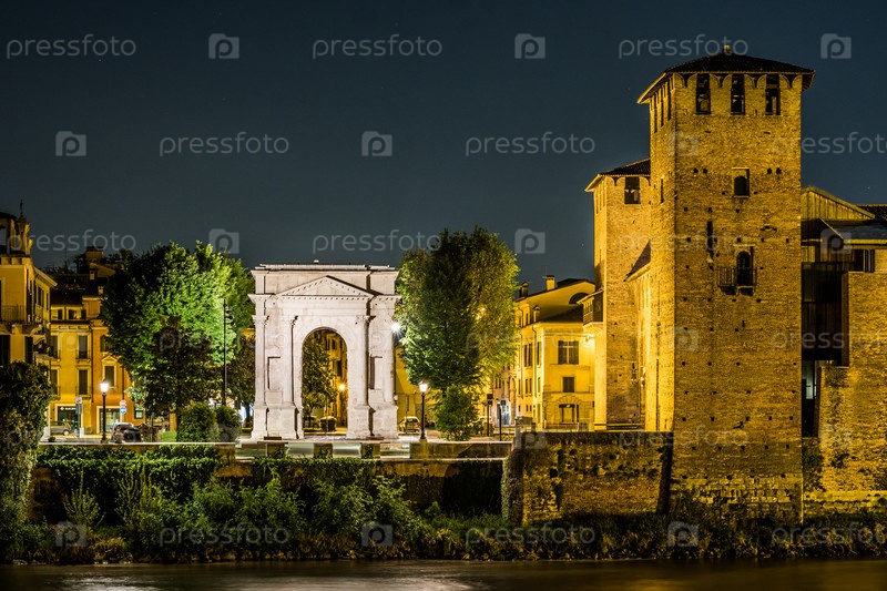 Замок Веккио в летнюю ночь в Вероне, Италия