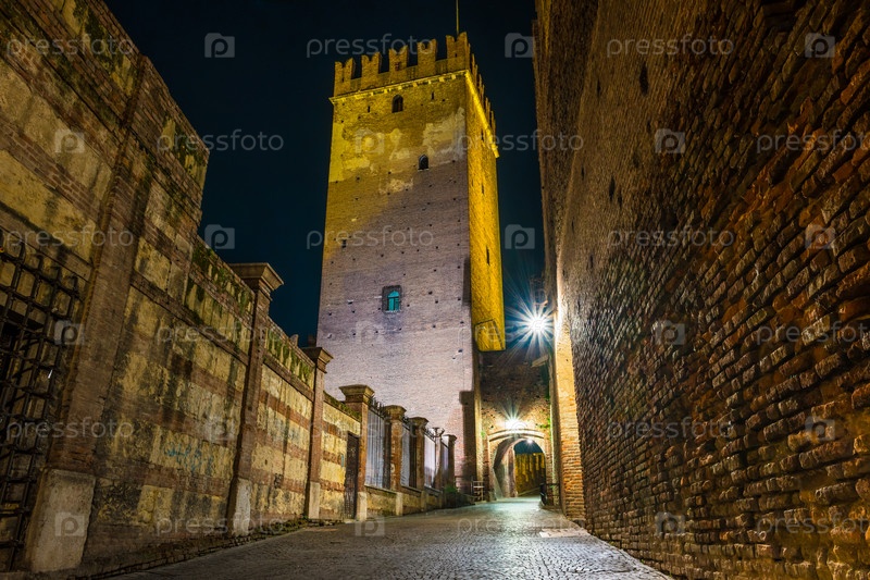 Замок Веккио в летнюю ночь в Вероне, Италия
