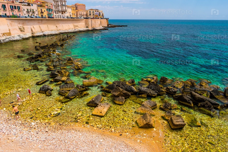 Побережье острова Ортиджия в городе Сиракузы