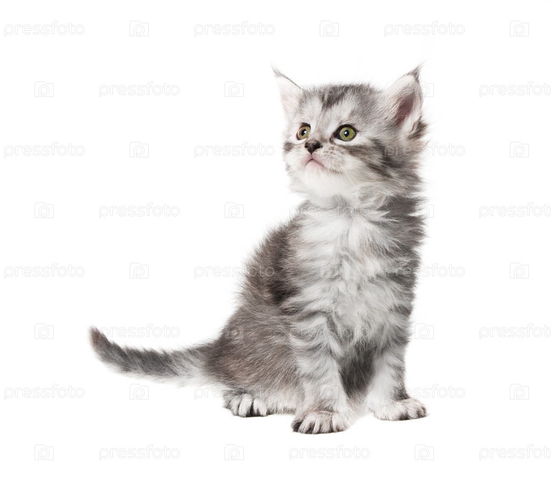 Серый котенок, изолированный на белом фоне
