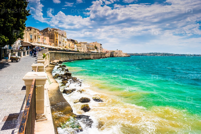 Побережье острова Ортиджия в городе Сиракузы