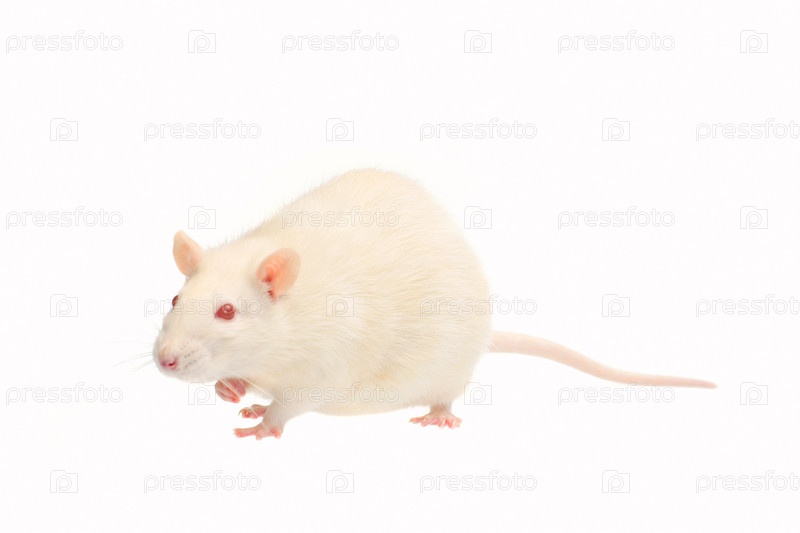 Крыса альбинос, изолированная на белом фоне