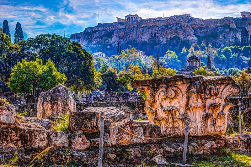 Вид на Акрополь с древних агоры, Афины, Греция