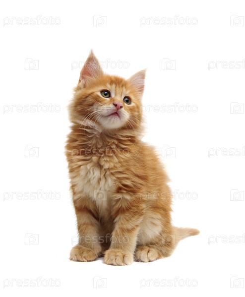 Милый рыжий котенок на белом фоне