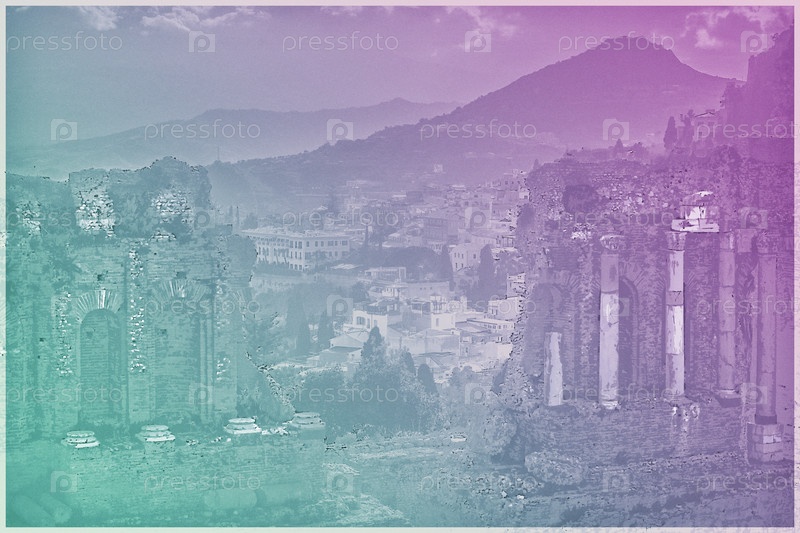 Руины Таормине театра на закате