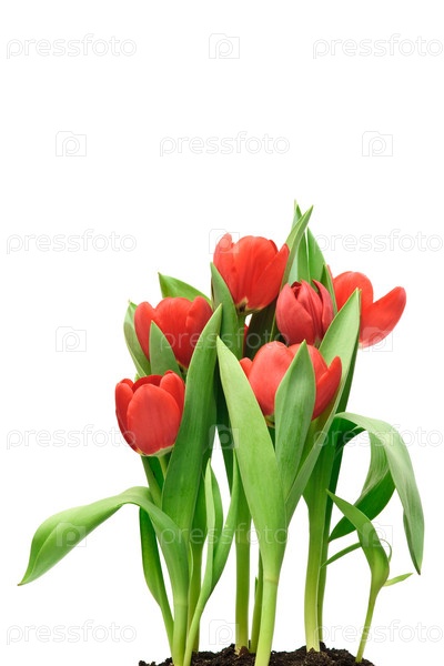 Красные тюльпаны, изолированные на белом фоне