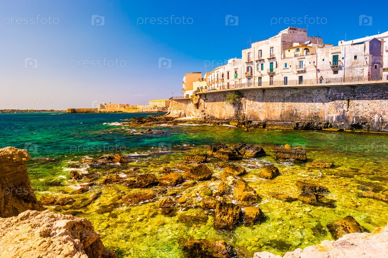 Побережье острова Ортиджия в городе Сиракузы