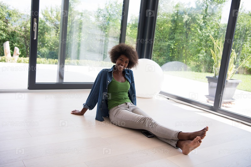 Афро-американская женщина, сидя на полу с ноутбуком