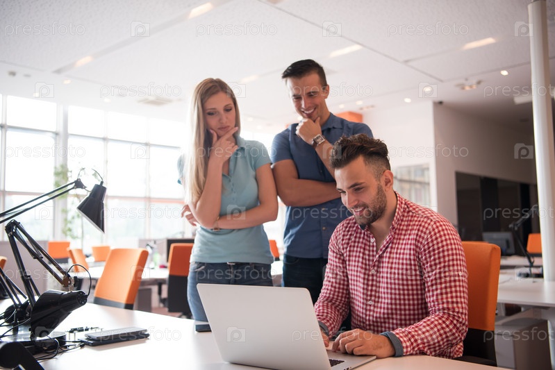 Группа молодых служащих с компьютером