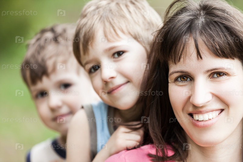 Счастливая мать с маленькими сыновьями. Семейное счастье
