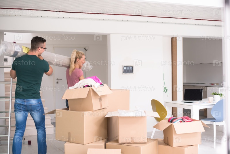 Молодая пара переезжает в новый дом