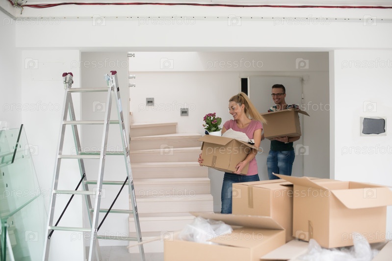 Молодая пара переезжает в новый дом