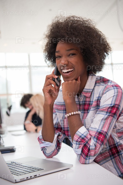 Афро-американская неформальная деловая женщина работает в офисе
