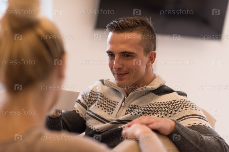 Молодая пара в передней части камина