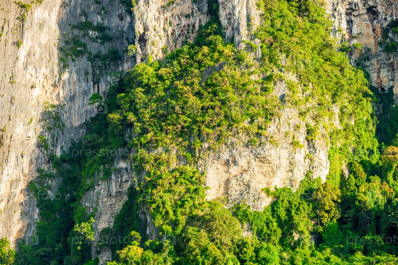 Скалистые утесы с растущими зелеными деревьями, Азии