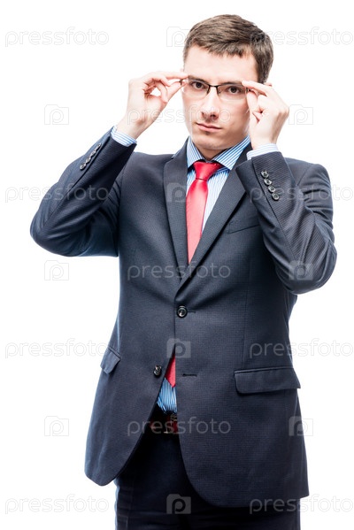 Серьезный бизнесмен поправляет очки
