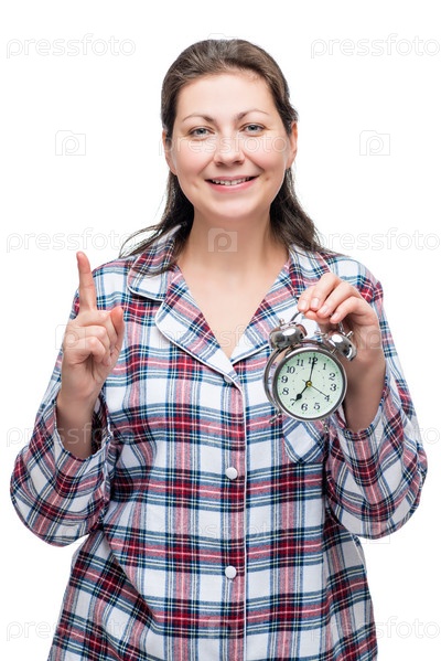 Женщина с будильником в руке