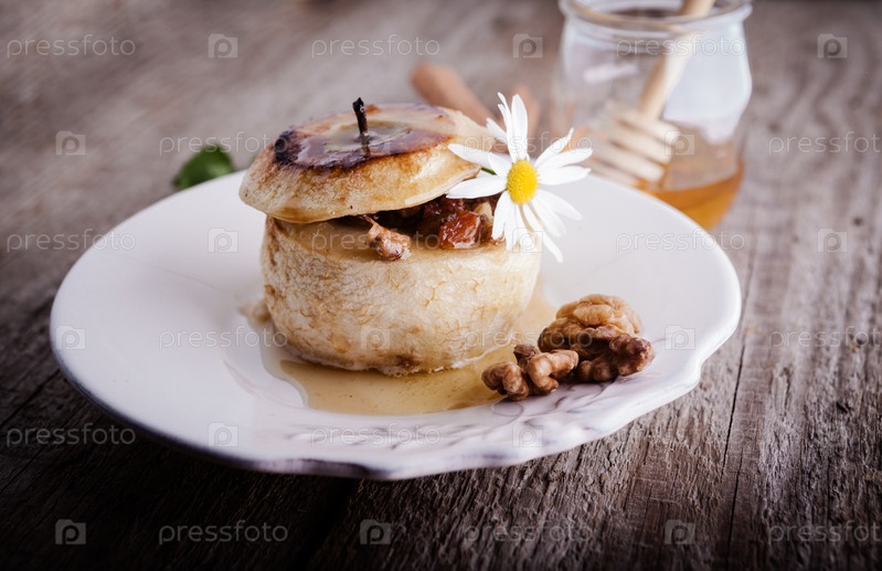 Запеченное яблоко с орехами и изюмом