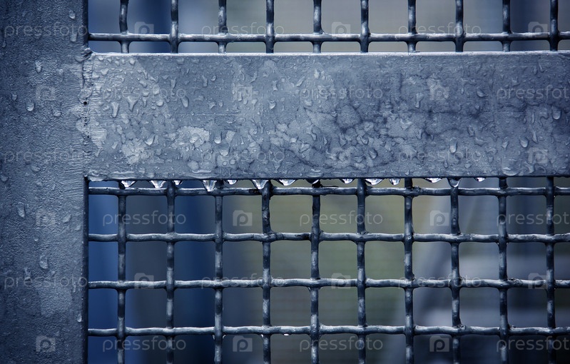 Железный забор в серый дождливый день