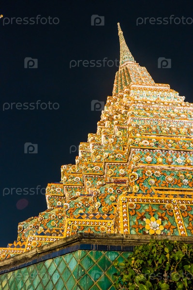 Красиво оформленные пагоды храма Ват Пхо в ночное время