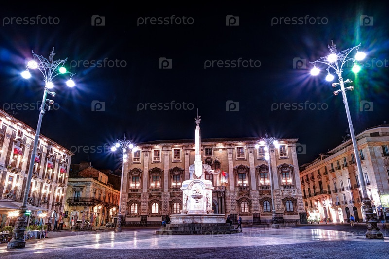 Ночной вид на Пьяцца дель Дуомо в Катании, Сицилия, Италия
