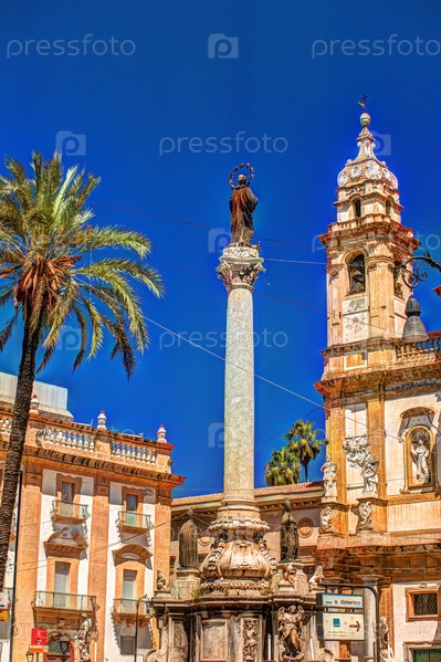 Обелиск Колонна делл Иммаколата на площади Сан Доменико в Палермо, Сицилия, Италия