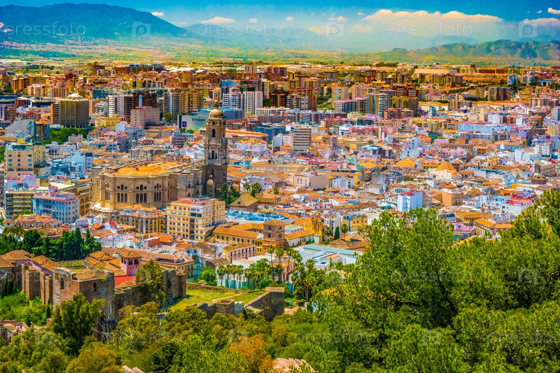 Городской пейзаж с высоты птичьего полета Малага, Испания