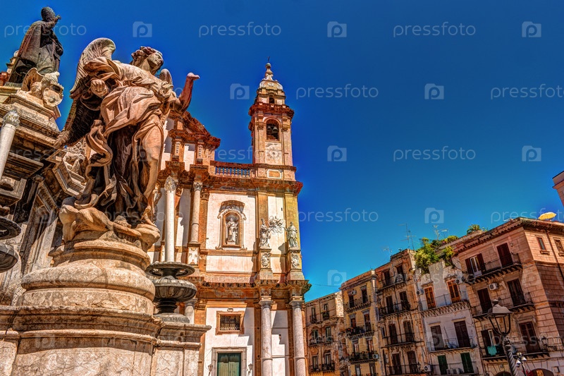 Обелиск Колонна делл Иммаколата на площади Сан Доменико в Палермо, Сицилия, Италия