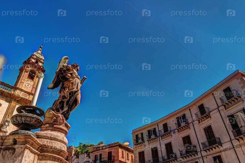 Обелиск Колонна делл Иммаколата на площади Сан Доменико в Палермо, Сицилия, Италия