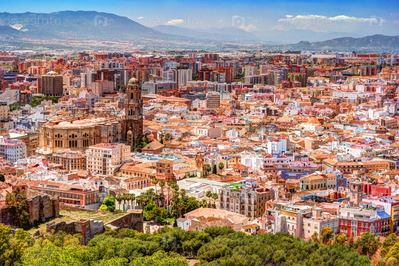 Городской пейзаж с высоты птичьего полета Малага, Испания