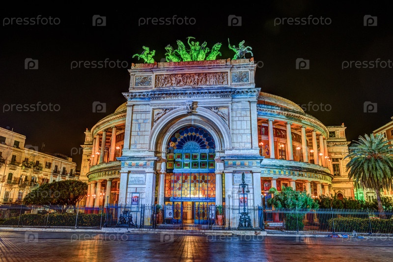 Ночной вид на театр Политеама Гарибальди в Палермо