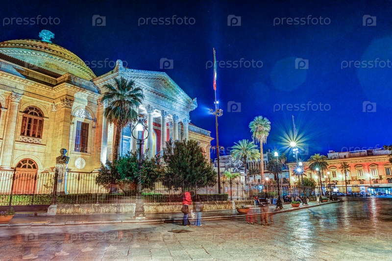 Вечером вид Театро Массимо