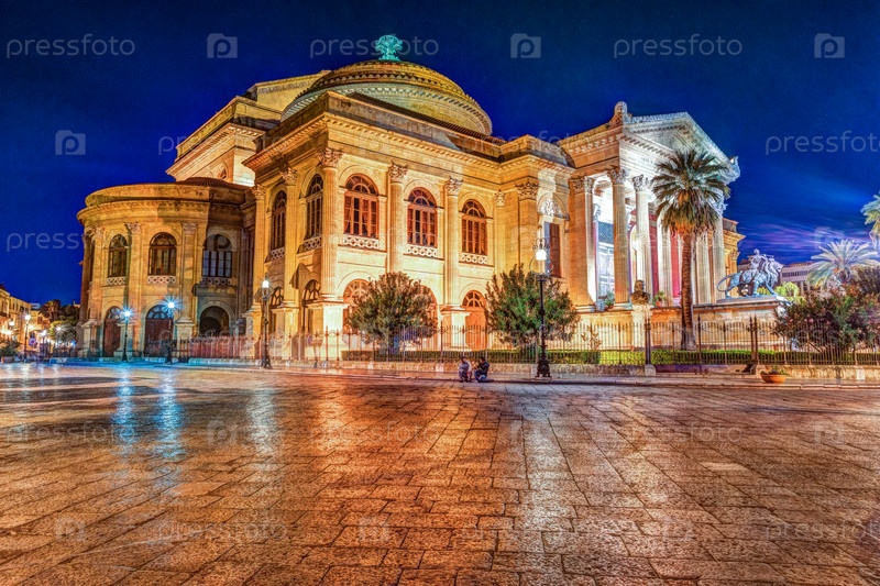 Вечером вид Театро Массимо