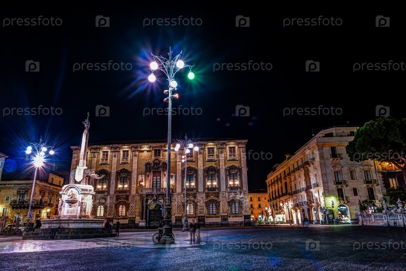 Пьяцца Дуомо с ратушей в Катании на Сицилии, Италия