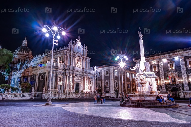 Ночной вид на Пьяцца дель Дуомо в Катания, Сицилия, Италия
