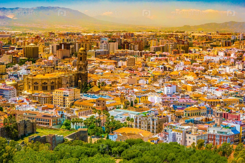 Городской пейзаж с высоты птичьего полета Малага, Испания