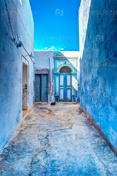 Традиционные старые окрашенные двери в историческом Медине, Тунис