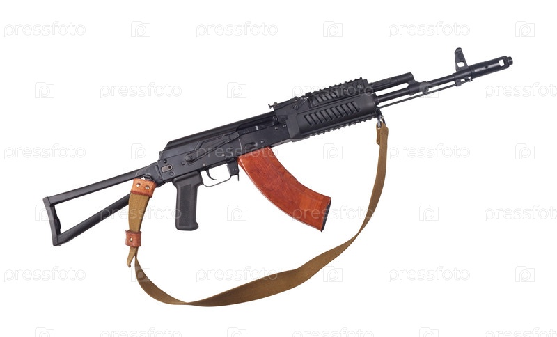 Автомат Калашникова изолирован на белом фоне с обтравочным контуром