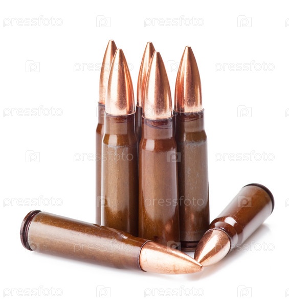 Боеприпасы для АК-47 на белом фоне