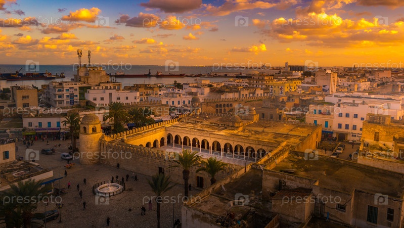 Красивый закат в городе Сус, Тунис