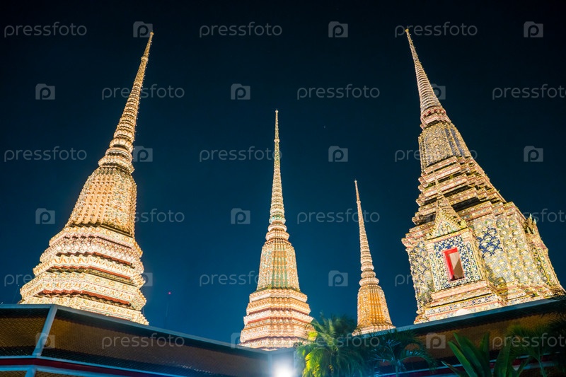 Красиво оформленные пагоды храма Ваты Пхи в ночное время