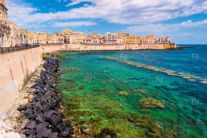 Побережье острова Ортиджия в городе Сиракузы