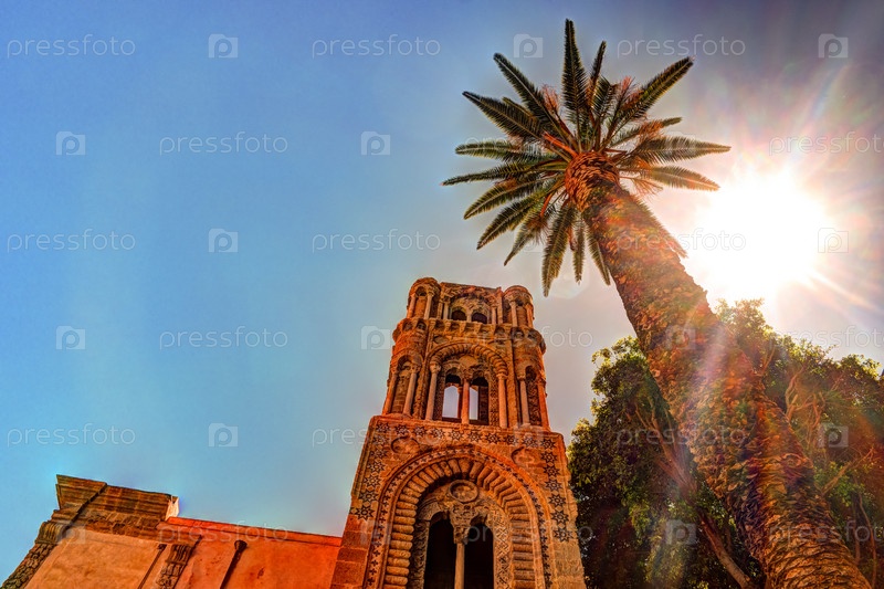 Колокольня церкви Марторана с пальмами, Палермо