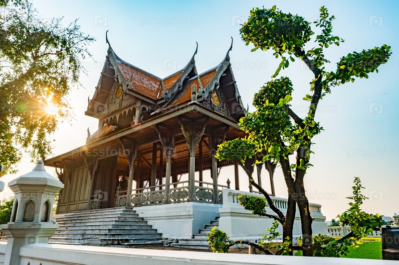 Павильон построен в традиционном стиле вблизи реки, Бангкок
