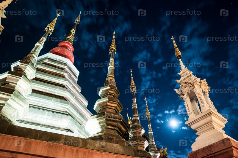 Ночной вид на храм в Чианг Май, Таиланд