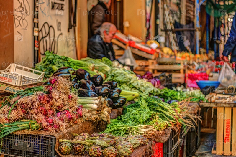 Свежие овощи на рынке в Палермо