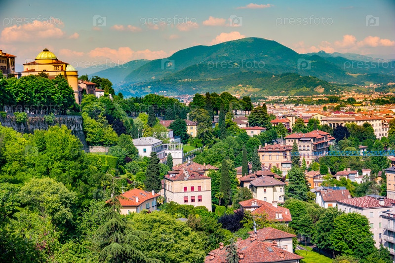 Панорамный вид Читта Альта, старый город. Бергамо