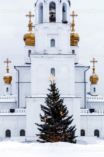 Православная Церковь на закате в зимний период