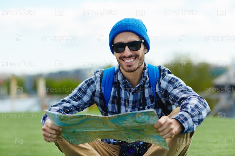 Турист с картой, путешествующий в одиночку