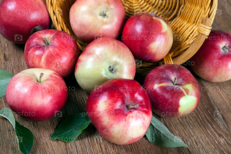Яблоки на деревянном столе